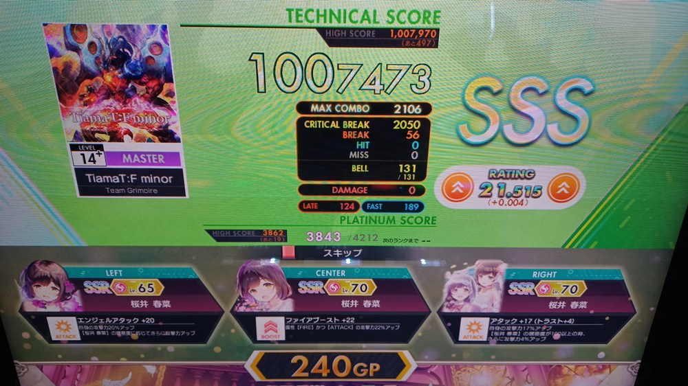 Re:Fresh開幕当初は、新設のプラチナスコア枠を狙った方がレーティングを伸ばしやすかった気がしますが、結構プラチナスコア枠も頑張ってきたので、新規★5よりも新規ALL BREAKや新規SSS+の方がやりやすい気がしてきたり