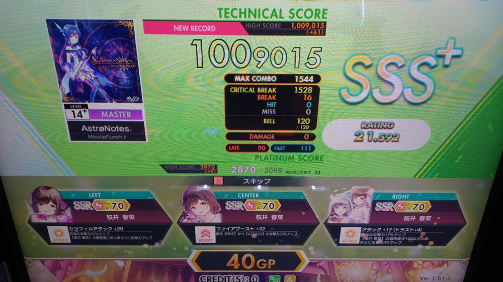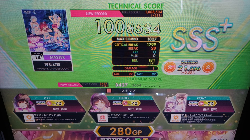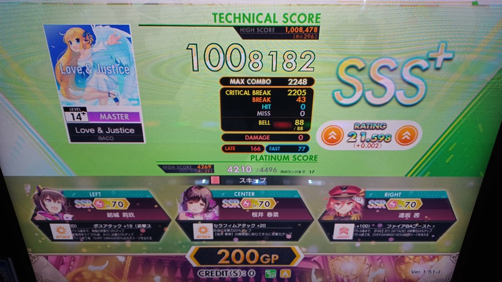 昇格後ではありましたが、だいぶ早めにSSS+ ABを決めたきりのスコアだった気がしてたのでやってみました